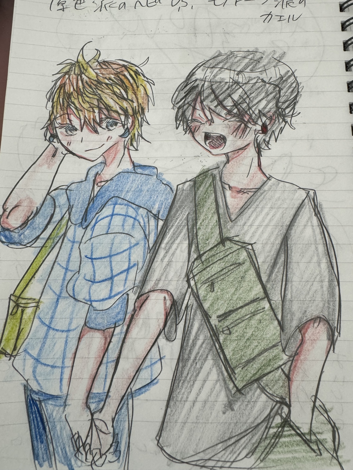 ファッション原色派大陸人のシエルくん ヘビの国の王子様(男なのにかなり女々しいやつ。しかも根暗のインキャ。)✖️ファッションはモノトーンでまとめる日本人のリカちゃん カエルの国のお姫様(男。陽キャの坂本犬のニセモノ。いやそもそも坂本自体が僕たち2人のニセモノ。)